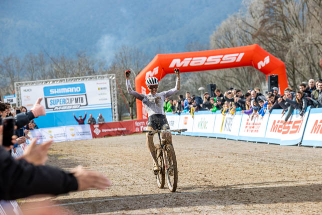 El último día de la Shimano Super Cup Massi de Banyoles sería frenético. La fina lluvia de la noche, dejaba un trazado pesado y más delicado de recorrer. Los mejores ciclistas del mundo estaban expectantes de cómo avanzaría la climatología durante el día. La jornada empezó con la prueba masculina de las UCI Junior Series. Los más jóvenes serían los encargados de abrir un circuito y comprobar los efectos del agua. El más fuerte fue Leo Lounela.