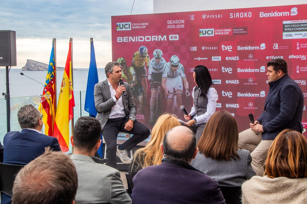 El Edificio Torrejó, frente a la turística y concurrida Playa de Levante de Benidorm, acogió el pasado viernes la presentación de la Copa del Mundo de Ciclocross UCI – Benidorm Costa Blanca 2026, cuarta edición de la gran fiesta y festival del ciclocross español que se celebrará el próximo domingo 18 de enero. El foco, no obstante, se concentró en un anuncio potencialmente histórico para el ciclismo nacional: La candidatura de la capital turística alicantina para acoger los Campeonatos del Mundo UCI de Ciclocross en 2031.
