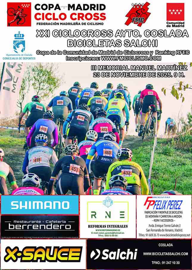 Será la 3ª cita puntuable de la Copa Comunidad de Madrid de ciclocross El Ayuntamiento de Coslada, en colaboración con el CEC Coslada, celebrarán el