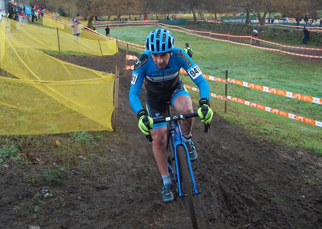 Luego fue el turno de Sergio Esteban en la manga de los 40. En A, la más complicada de todas, se impuso el vigente campeón continental, el asturiano Agustín Navarro, con el madrileño terminando 56º a 8:37. El resultado era lo de menos, ya que se trataba de disfrutar de la gran cita de la campaña ciclopedestre: “Fue la carrera que estaba esperando desde hace meses por el ambiente que se vive. Salimos 158 corredores, que en una recta como la que había se hacía peligrosa –relata-. Pude salvarla sin caídas, y luego pude ir disfrutando de un circuito un poco embarrado, y trazando con mucho tiento pude finalmente conseguir que no me doblaran y así terminar la prueba. Quiero dar las gracias a todos los patrocinadores y a los compañeros por la temporada tan espectacular de ciclocross que hemos tenido. El próximo año más y mejor”.