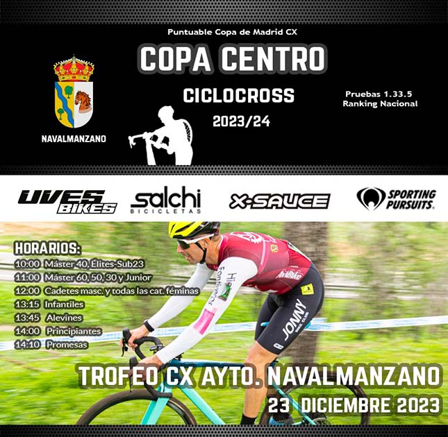 Fase decisiva de la Copa Centro de Ciclocross, que vivirá sus dos últimas carreras en suelo castellano-leonés. La 12ª y penúltima puntuable tendrá lugar este domingo 23 de Diciembre en suelo segoviano. Hablamos del I Gran Premio Ciclocross Ayuntamiento de Navalmanzano, organizado por el CD Jonny Bike en colaboración con la corporación municipal de localidad. Recordar que la prueba reparte puntos para el ranking nacional al ser 1.33.5.