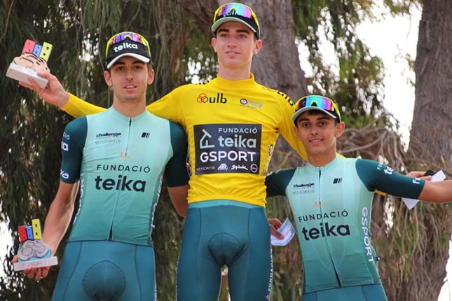 El ciclocross valenciano salió bien parado el pasado fin de semana de su tránsito por las carreras internacionales de Galicia. El sábado se celebró en Pontevedra la primera prueba puntuable de la Copa de España, de categoría UCI C1. Tres lideratos del torneo y seis podios para empezar. El Teika arrasó en juniors con el triplete Raúl Mira-Pablo Calvo-Iván Gomar, más el 2º el puesto de Vania Rico en chicas. Tampoco perdonaron en cadetes con la victoria de David Ivars y el 3º lugar de Leyre Almena.